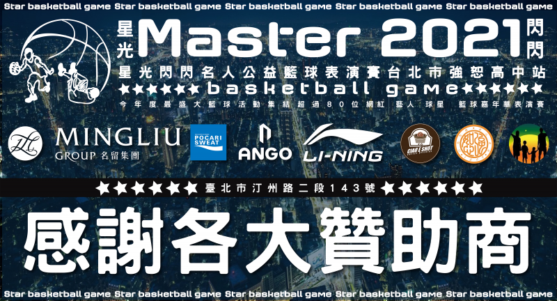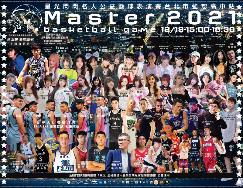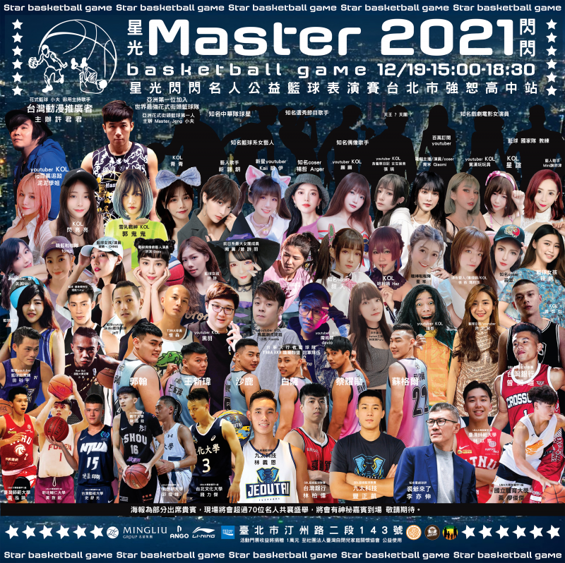 君君:沒問題~交給我介紹 2021冬季 星光閃閃 master名人籃球賽 強恕高中站,即將在12月19號下午3點到6點半舉行由台灣花式街頭籃球第一人小夫,與他的好夥伴 台灣動漫推廣者 許君君 共同舉辦,邀請超過 80位 網紅 藝人 歌手 演員 體育名人