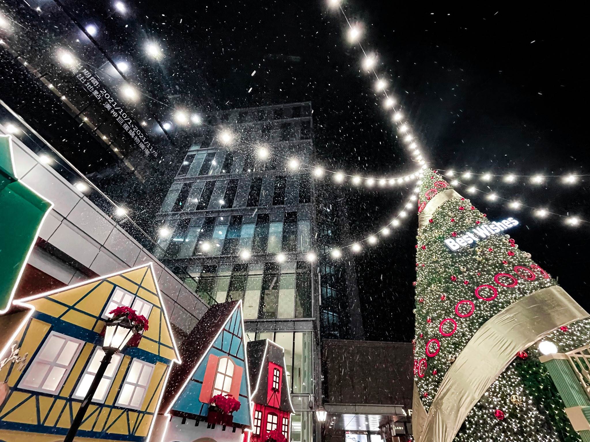 即日起至1月3日的展期間,還推出近600場的「飄雪燈光秀」,在每天的17:00-22:00之間,每30分鐘一場。以絢爛燈光,搭配靄靄白雪飄落,洋溢著滿滿聖誕氛圍。