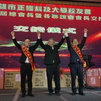 校友會總會長交接在校長龔瑞璋監交下,前總會長吳榮哲交棒給機械工程系畢業、現任誠正公司董事長李建昌,正修校友會即將邁入第40屆,在創會長黃啟川及各屆總會長帶領下,已成為南台灣首屈一指的校友聯誼社團。