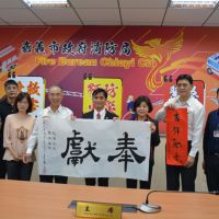 嘉義市消防局蘇耀星局長感謝李仁燿大師贈給消防局「奉獻」墨寶創作字句,正好呼應消防「給人希望是天使,救人苦難是菩薩」精神,更是所有消防人員奉行不悖的信念,消防局如獲至寶,典而藏之;蘇耀星局長表示,古有「曲突徙薪無恩澤,焦頭爛額為上賓」典故提醒民眾,強化火災預防作為事前預防,才能真正的避免火災憾事發生,相關電氣、菸蒂、炊事不慎、縱火、車輛等常見的火災原因,提醒市民做好萬全防火準備,加強注意居家防火安全,多一份用心,少一分損失,共同打造安全的嘉義市。