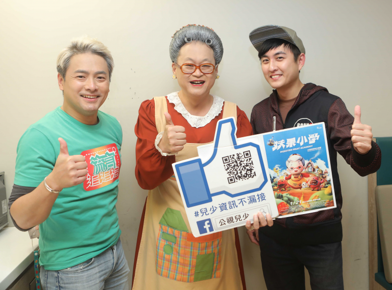 水果奶奶也在傍晚現身舞台區,提醒大家開心參加活動也別忘防疫基本功,帶動全場孩子學習洗手舞。曾以公視兒少節目《成語賽恩思》獲得金鐘兒少主持人獎的黃靖倫,今天也特別帶著妻小來到 「公視兒少年度活動」,並找水果奶奶敘舊,再加上小兵一共三位金鐘主持人請大家一同支持公視優質兒少節目,也邀請大小朋友明年寒假進電影院觀賞水果奶奶IP動畫電影《妖果小學-水果奶奶的大秘密》。
