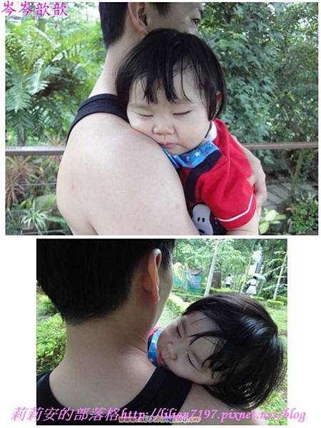 以前我不在家,小孩哭鬧想睡時,爸比都"揹睡"~哈(左下圖)