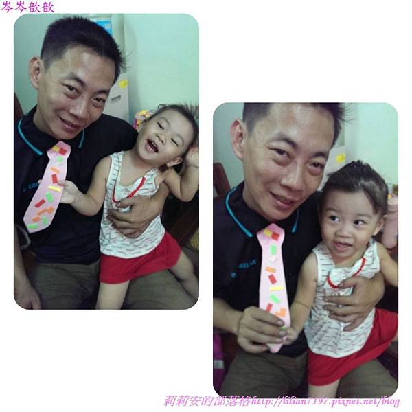 父親節時,岑岑做給爸爸的領帶~雖然一戴馬上壞XD,但算很有誠意了