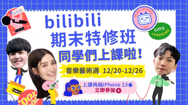 隨著期末考結束學期也將進入尾聲,準備迎接美好假期時光到來,《bilibili期末特修班》即日起至2022/01/30,由六個主題領域職人UP主,拍攝教學職業專長課程與大家分享。即日起天天簽到領取全勤福利,輕鬆抽Apple Strore禮品卡!
