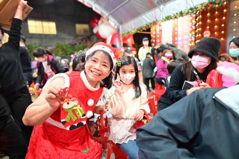 ▲新北市深坑區長黃美華穿扮聖誕裝與民同樂送禮物。(圖/深坑區公所提供)