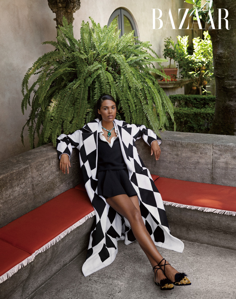 即便身處炎熱依舊的冬日,攝影鏡頭前的Tina Kunakey仍一派優雅自若。本次拍攝選址米蘭Villa Necchi別墅中的美麗花園,這棟興建於1930年代初期的宅邸出自義大利建築名家Piero Portaluppi之手,室內外各個角落皆訴說著經典奢華的迷人風情,更曾吸引義大利名導Luca Guadagnino在2009年到此取景拍攝英國女星Tilda Swinton主演的電影《我愛故我在》。