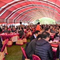 〔今傳媒/記者郭政隆報導〕為關懷年長退除役官兵和眷屬,嘉義榮民服務處延續第四年與榮民長輩圍爐同歡活動,1/14日席開70桌於水上鄉新興園餐廳辦理「給長輩的歲末祝福」活動,因顧及防疫需要,活動規劃不斷調整,並擬訂妥善的防疫計畫和風險評估並嚴格執行,滿足許多長輩的殷殷期盼,也維護所有與會賓客的健康。