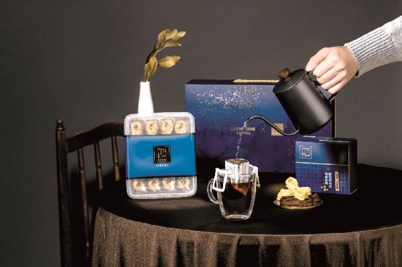 因為重視環境與社會的永續,「成真咖啡」榮獲ESG概念認證,「六月初一」與「成真咖啡」雙冠軍聯名推出咖啡禮盒,透過全新改版的ESG紀念款,手提禮盒以簡約沉穩藍底、質感燙金設計,內裝精品蛋捲,阿拉比卡豆冠軍咖啡濾掛包,為大家帶來更多元的送禮選擇,亦是企業送禮採購首選。