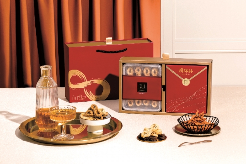 金8結系列禮盒是充滿喜氣,感恩送禮的最佳選擇,大器的紅底燙金設計,象徵人與人之間不斷循環的連結,包含彼此相互感謝、珍惜的心意,期待能透過分享生活中美好的事物,來表現最大的祝福。