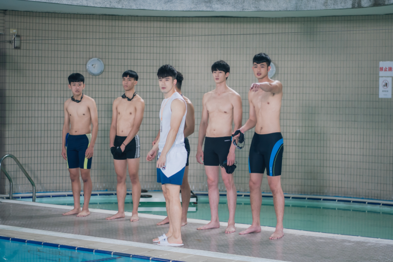 談起游泳水上活動,身高有194cm的新生代演員王新凱表示,從小很習慣在泳池踩得到底,其實不太敢去海邊游泳,還好這次是在泳池拍攝。另一位學生演員黃柏峰則說自己蠻喜歡游泳,常常會跟朋友固定約時間海邊衝浪,這陣子因拍戲已經許久未去放鬆一下。
