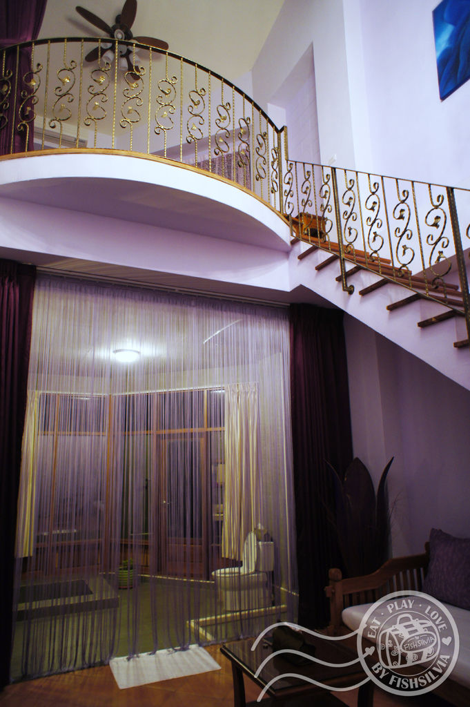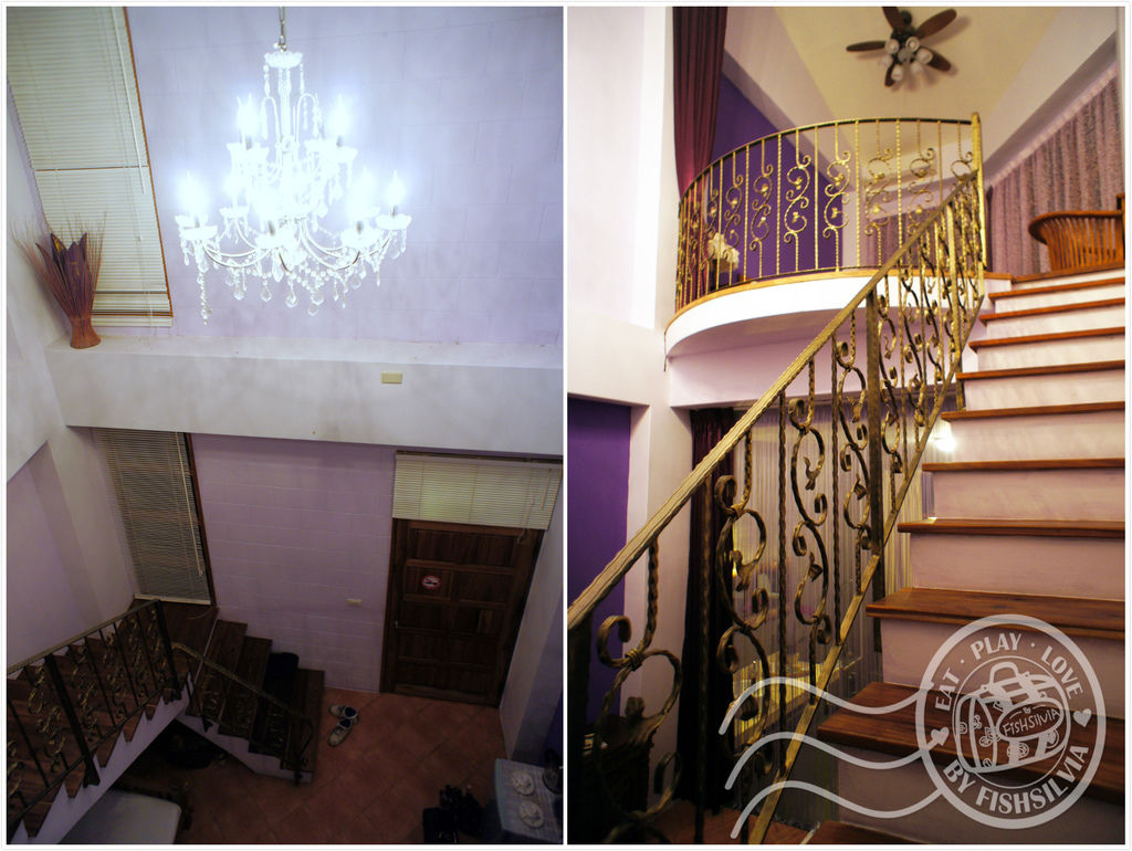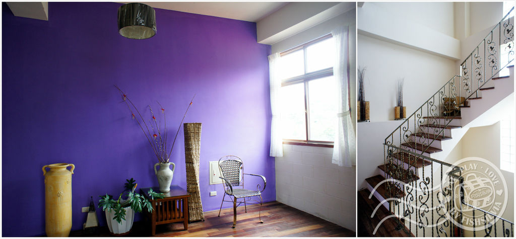 主屋同樣有講究的鍛鐵扶梯,來到二樓,一樣有搶眼豔紫陳設出眼前端景