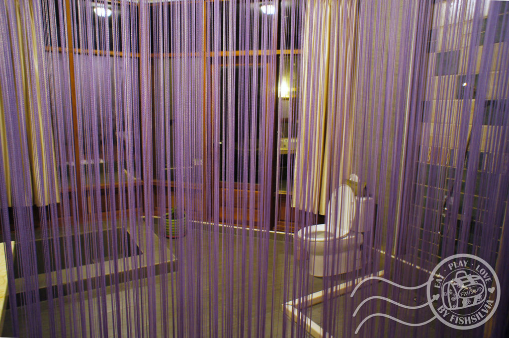 掛上紫色流蘇簾幕的浴室更是個大驚奇