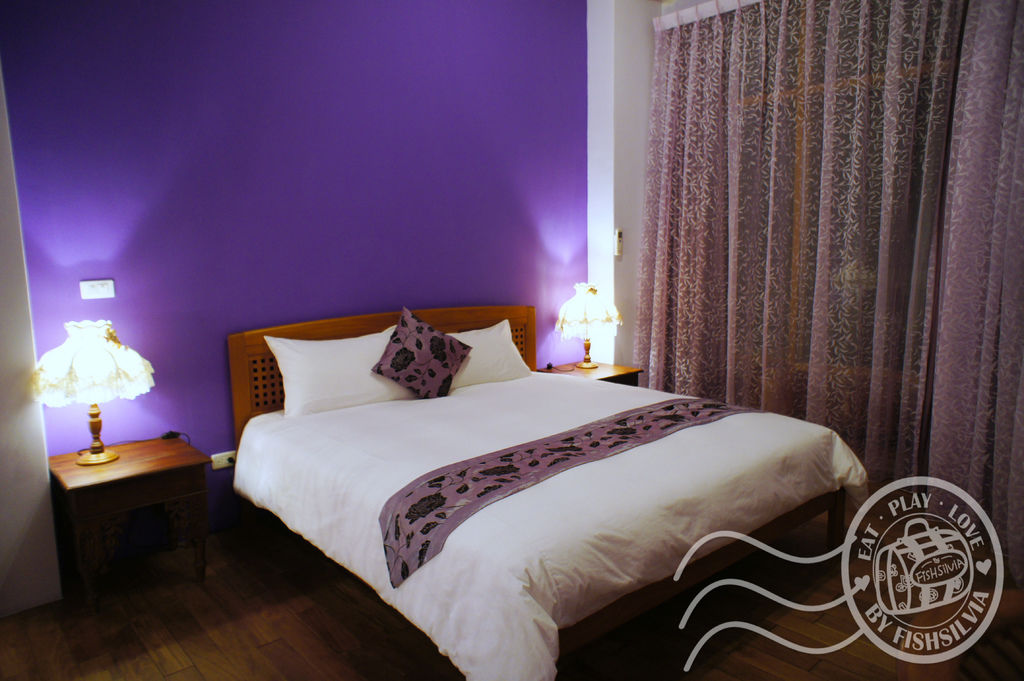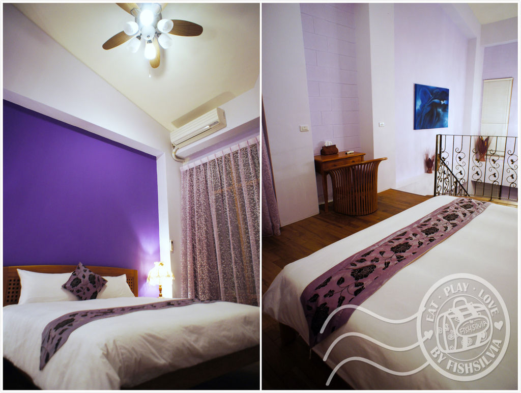同樣夢幻的紫色臥房看起來簡約舒適,標準雙人床鬆軟好眠,踩在木質地板上就好像回到家一樣的令人安心~