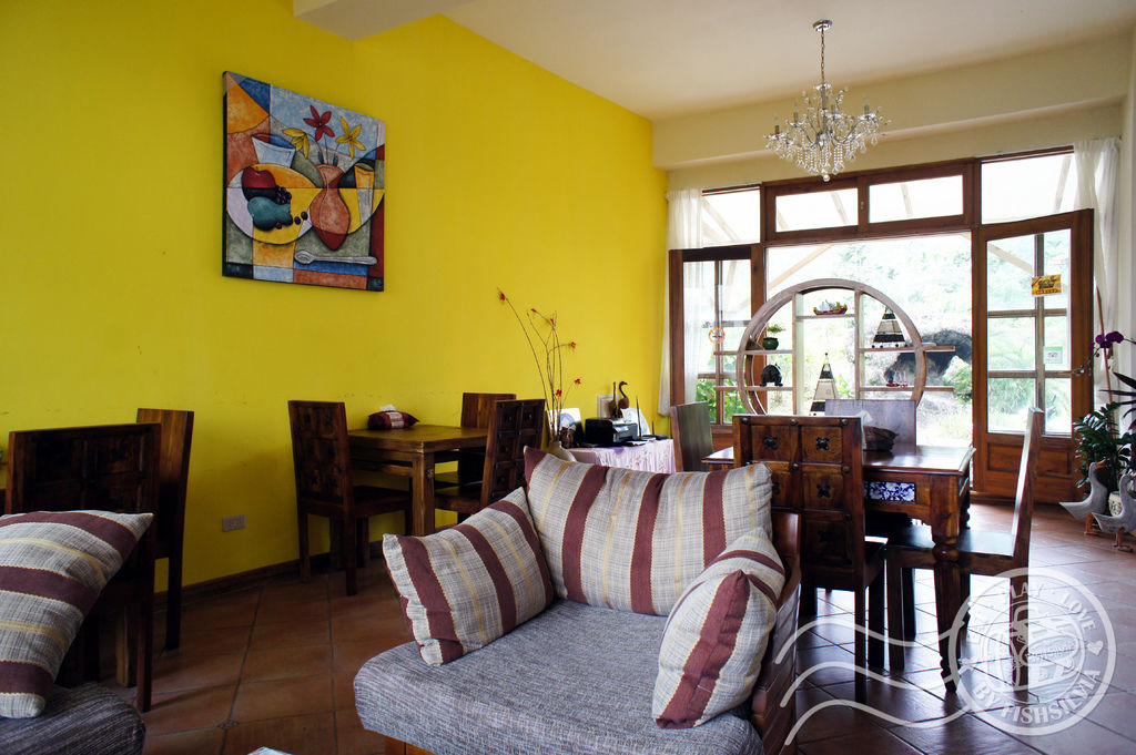 晨光時分,昨夜的溫暖客廳現在則搖身一變成為活力餐廳,亮黃色在自然光照中更顯耀眼,吃完早餐好像會精神百倍的樣子!