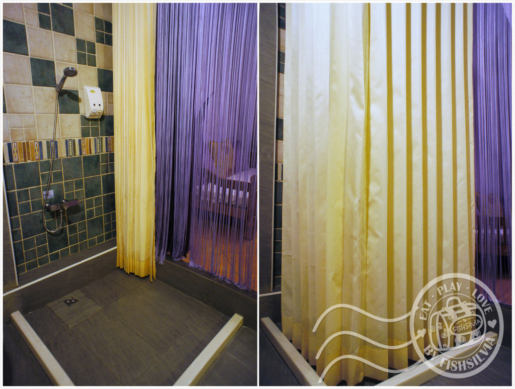 對了,浴室門口是有不透光的布簾可以拉起來的,別害羞~其實還挺有情趣的呢!