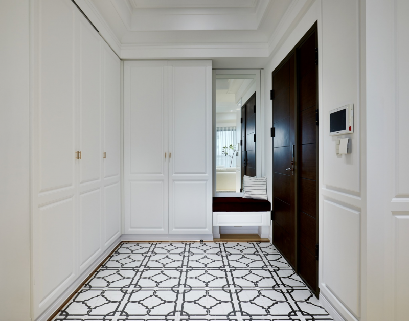 玄關洋溢美式風,將鞋櫃、吊衣架空間給出完美的收納秩序。