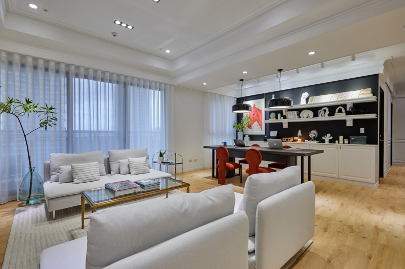 開放式閱讀區,讓公領域匯聚落地窗的充沛採光。