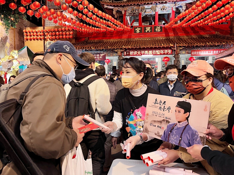 陳亞蘭除夕圍爐不到一小時就開工南下雲林福興宮派送春聯,展現嘉慶君勤政愛民精神。(圖:欣湉國際)