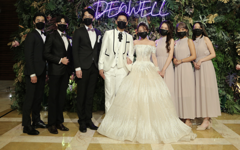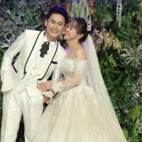 其中擔任婚禮演唱嘉賓「87樂團」的艾成與王瞳表示今天很開心可以來獻唱祝福歌曲,尤其在《大時代》中陳彥廷是飾演王瞳的哥哥伍家輝,所以兩人有革命情感,很開心能夠來獻上祝福。