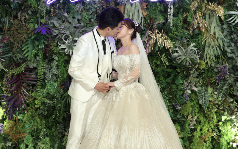 新娘子呂璦唯也表示:因疫情不定,這一陣子還很擔心能不能順利舉辦婚禮,但飯店與我們也盡力做好所有防疫措施,讓大家開心安心來喝喜酒看表演,希望賓主盡歡!感謝老公這麼用心籌備的浪漫婚禮,常常忙到整個晚上都沒睡覺,聯繫、處理所有大小事宜、又準備成長影片又設計表演…,真的很感動!也要特別謝謝卡度造型沙龍特別為了贊助的婚禮小物。