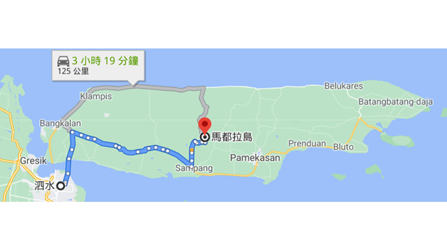 馬都拉島與泗水、泗馬大橋位置 資料來源:google