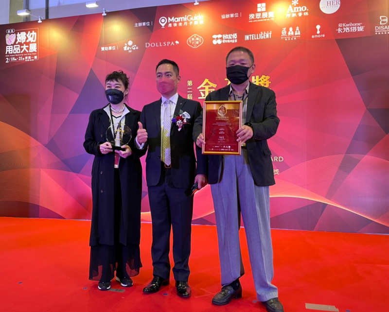 廣和月子餐榮獲金孕獎肯定,廣和執行長章卉茹、MamiGuide執行長李國寧、廣和董事長賴駿杰(由左至右)一同合影留念。圖/廣和提供