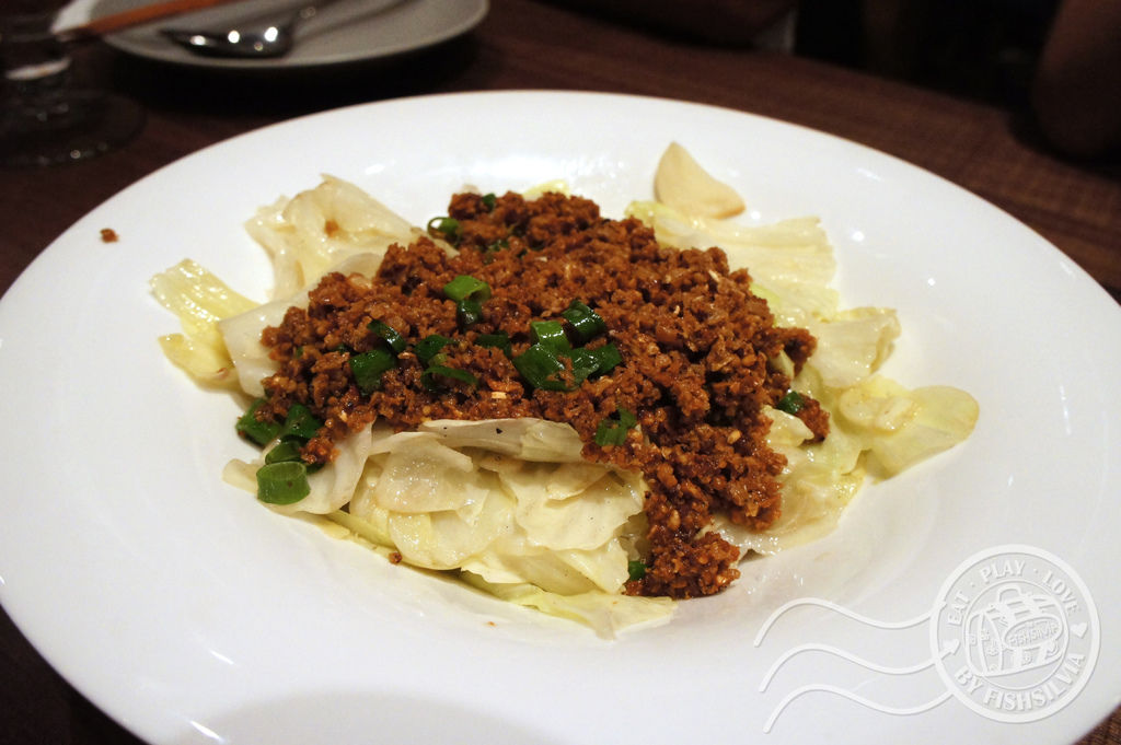 沒吃到人氣動物刈包沒關係,我們還是點了一桌子好菜~第一道蔬菜先上桌做個暖身,訂價很奇妙的豆酥高麗菜(NT$ 157)份量不是太大,好像一會兒就被我們四個嗜草人瞬間秒殺了哈