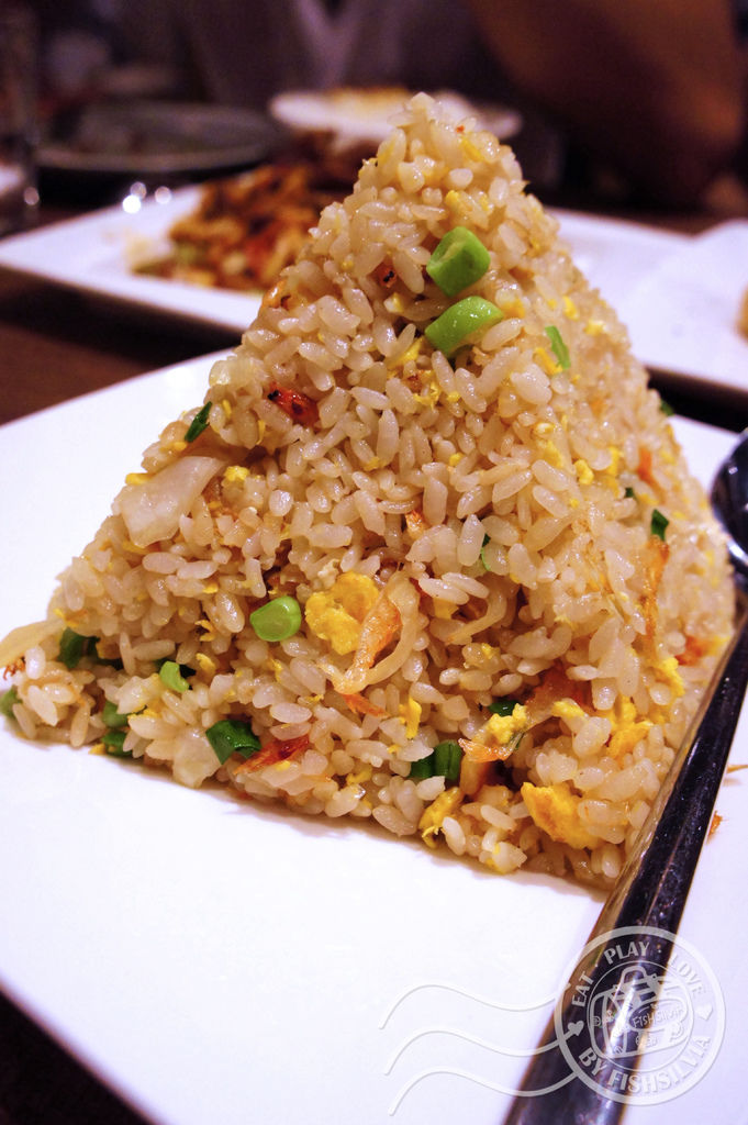 噢!!飯終於來了~值得歡呼!煞有其事的櫻花蝦炒飯(NT$ 177)又是近來很常見的金字塔造型,不過既然要標新立異應該要堆成101的樣子才夠驚喜啊~