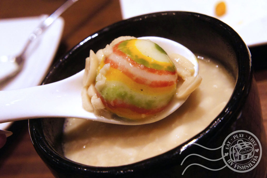 這顆有著奇幻彩虹圖案的小玩意兒其實是湯圓,取其紋路像是國寶雨花石而得名的吧我想~香滑花生湯裡共有芝麻和花生兩種口味,我想是很適合冬日的一道甜湯啊,長輩們(像是我媽)都會喜歡的