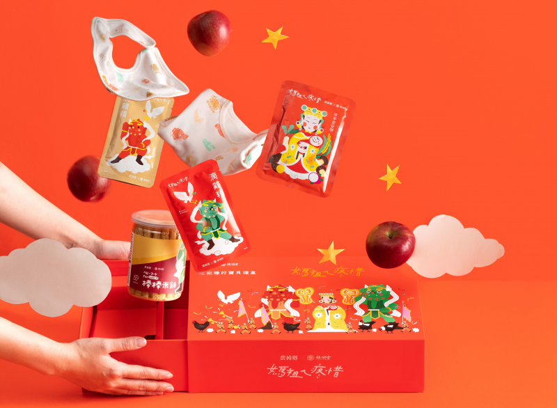 以去年首次跨界聯名的滴雞精品牌農純鄉為例,推出喜氣亮眼的紅色聯名禮盒,Q版媽祖坐鎮中央,千里眼及順風耳伴隨左右,以最強陣容一同守護世上媽媽與寶寶的平安,光拿著禮盒就能感受到溫暖與加持,一開賣隨即搶購一空。