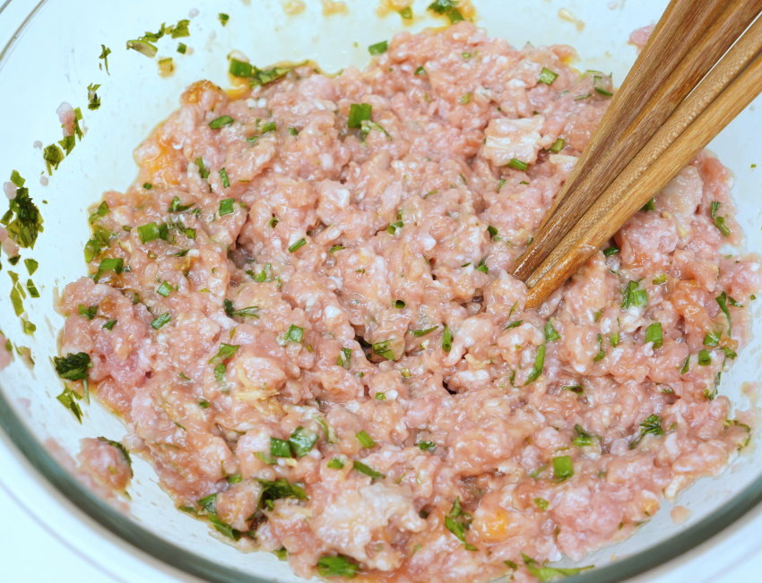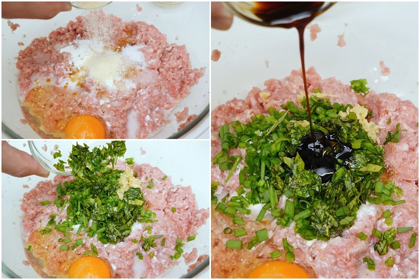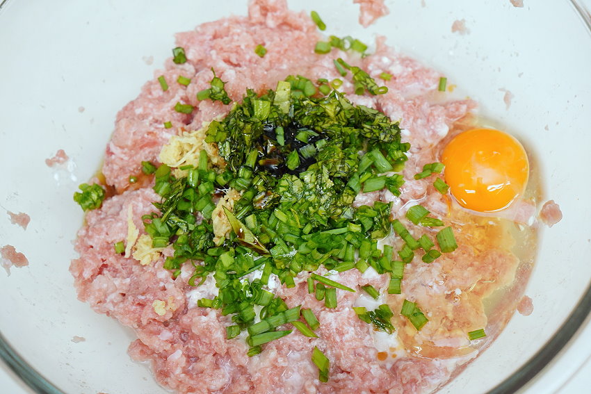 ▼太白粉、雞蛋可增加肉的黏性,也會讓肉餡比較好包!