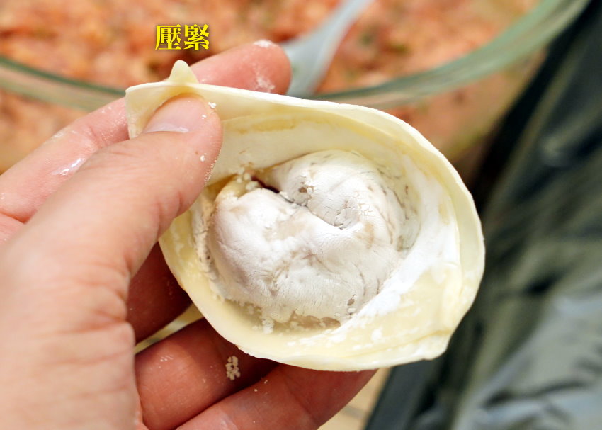 ▼這個最簡單的包法可以再快一點,我在家通常簡化成一個動作,這次內餡再包多一點!
