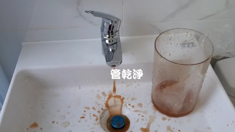 如是自來水,如水管老化,會產生鐵鏽跟泥沙堆積,洗出來的水就會是咖啡色,地下水含有氧化錳,管壁上會結成黑色管垢,洗出來的水會跟石油一樣黑,有些洗出綠色的水,是因為裡面有銅的物質,生鏽產生銅綠,如是藍色的水,是因為水龍頭合金的養化造成,有些水管洗出像洗米水一樣,水會是黃白色,這說明水管裡面沒有生鏽,所以只洗出水管壁的生物膜。