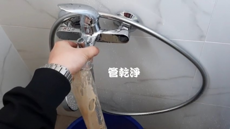 邱先生 裝潢客戶家時發現熱水出水量很小,已經用滴的了,本公司驅車至 現場,進行 洗水管 作業,檢測無發現,本公司裝設 高周波水管清洗機,灌入 檸檬酸 至水管,等了約15分,開啟 水管清洗機 ,啟動 螺旋波 模式,一洗就出黃棕色髒水,看起來像是奶茶,二個多小時後,出水量恢復了。