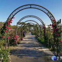 台北玫瑰展「玫好製作所」正在浪漫中!和煦的陽光捎來春臨大地的信息,四季輪開的茶玫瑰和季節性草花相互爭艷,玫瑰園的各處拱門上也爬滿了許多不同品種的蔓玫,搭配古典建築的園藝造景,彷彿置身歐洲宮廷花園。園區內最受民眾青睞的打卡點就是一座座絕美的蔓玫拱門,鮮豔繽紛的花朵接棒盛開,讓到訪的遊客留連忘返。