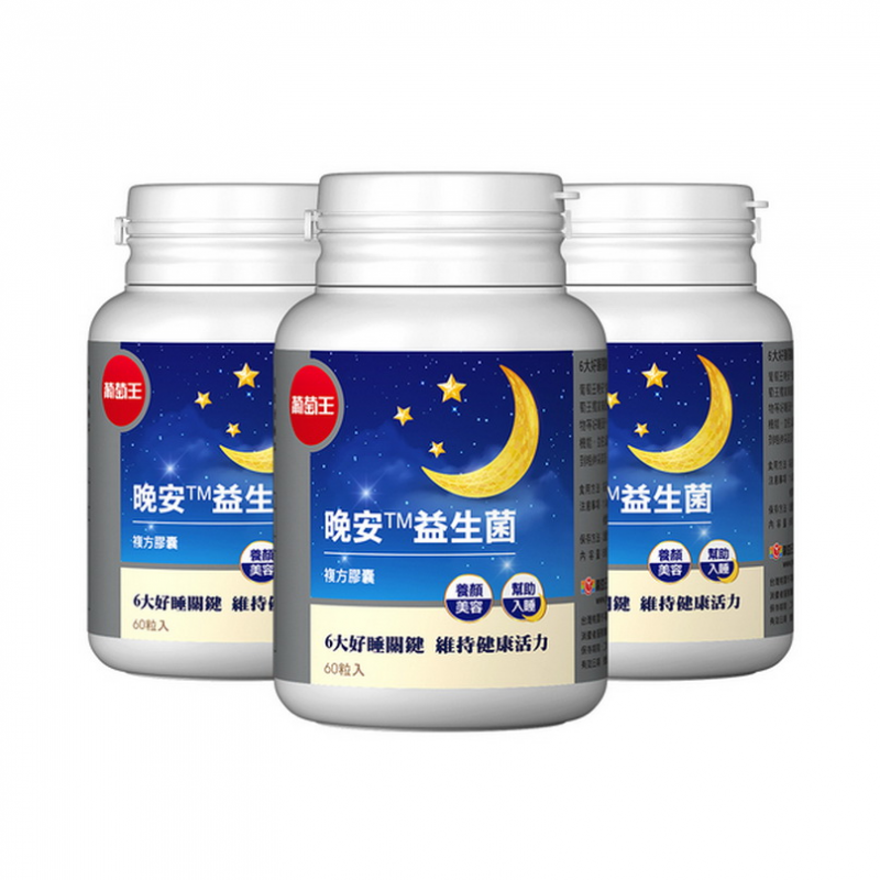 新上市的【葡萄王晚安益生菌】,擁有獨家專利美眠活菌、法國專利舒眠番紅花與芝麻素等好眠所需營養素,加上越桔精華與維生素E,更能睡出好氣色!