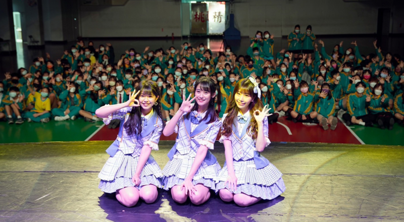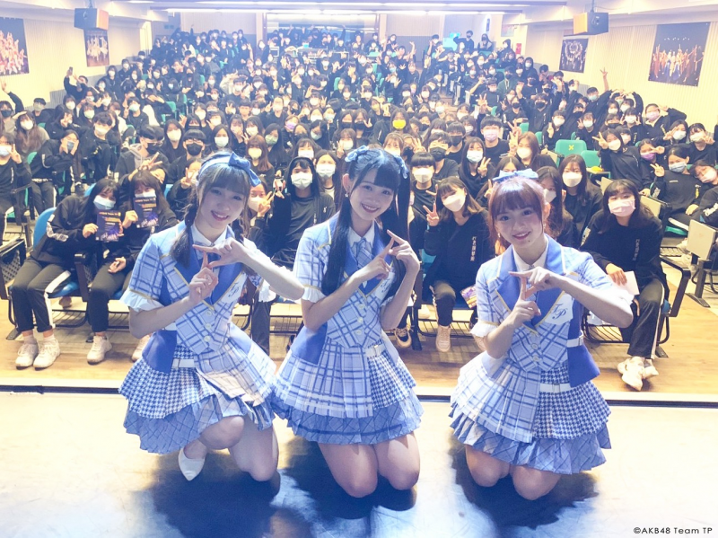 成員們一登場即受到學生們的熱情歡迎,尖叫聲更此起彼落,讓她們忍不住笑說到處都充滿著青春熱血的氣息!而她們首先誠意十足的一連帶來多首唱跳,緊接著則由三位成員現身說法分別聊加入AKB48 Team TP的契機。