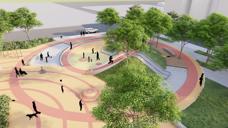 2鄭市長表示「桃園市八德區建國路(雨水調節池)排水改善工程」、「建國路 (RL-B)幹線排水改善工程」工程經費合計1.14億,皆由營建署全額補助,雨水調節池工程於111年3月25日開工,預計112年3月20日完工,建國路排水幹線工程也將跟著進場施工,工程完工後除了淹水改善,兩處公園也將藉由雨水調節池工程注入新元素,建國公園設置足夠空曠腹地,以符合里民中大型集會場域需求,同和公園則配合今年剛完工開始招生的大和非營利幼兒園,以幼兒園延伸設計主軸,設置遊戲丘、溜滑梯及鞦韆等共融式遊具,開放空間設置大面積彩色地墊,提供教學活動使用,另外兩公園皆以環保透水鋪面設計,增加公園透濕保水能力,公園內水溝收集雨水,減少逕流外排,進行雨水回收利用,藉此提高綠能環保內涵,達到節能減碳,環境友善目標。