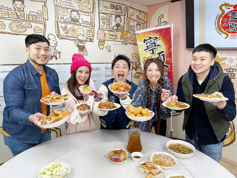 ▲ 蔡昌憲、卓文萱、大胃王邵阿咩、吃飯兄弟前往寧夏夜市吃美食。(圖:緯來綜合台)