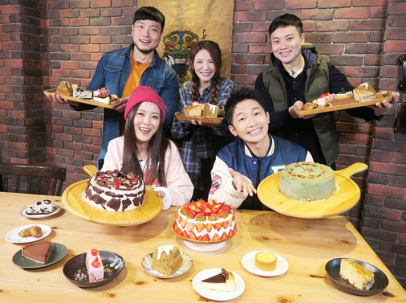 ▲ 蔡昌憲、卓文萱、大胃王邵阿咩、吃飯兄弟享用藍帶甜點。(圖:緯來綜合台)