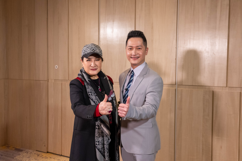 ▲ 費玉清滿腹才華,把他挖到電視機前面來「犧牲色相」,除了唱歌還要講成人笑話、模仿,讓張菲有點不好意思。(圖:台視)