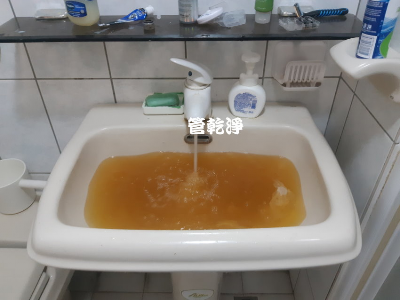 如是自來水,如水管老化,會產生鐵鏽跟泥沙堆積,洗出來的水就會是咖啡色,地下水含有氧化錳,管壁上會結成黑色管垢,洗出來的水會跟石油一樣黑,有些洗出綠色的水,是因為裡面有銅的物質,生鏽產生銅綠,如是藍色的水,是因為水龍頭合金的養化造成,有些水管洗出像洗米水一樣,水會是黃白色,這說明水管裡面沒有生鏽,所以只洗出水管壁的生物膜。