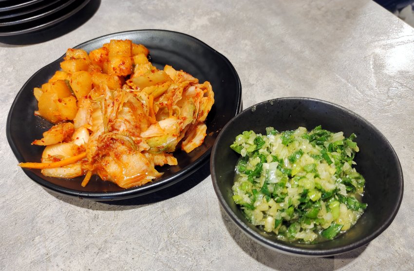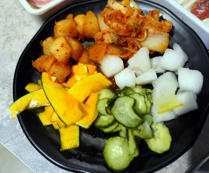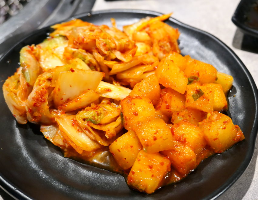 ▼韓式泡菜、韓式辣蘿蔔都是燒肉好朋友,口味也都不錯,我們直接拿圓盤裝吃起來更過癮!
