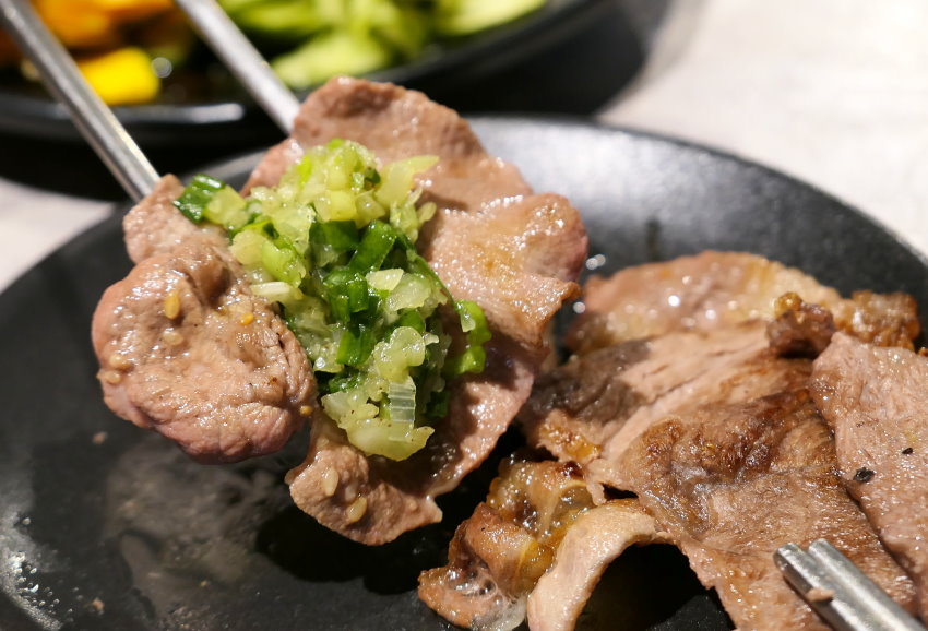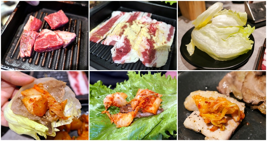 ▼椒鹽角切牛肉,吃起來其實還不錯~~但可惜要烤比較久!想要吃更多肉肉就要搭配多元的配菜,我們很喜歡將燒肉夾在生菜中,再加上泡菜、辣蘿蔔等一起享用,大口咬下超爽快!