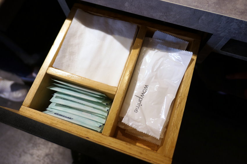 ▼桌邊抽屜附有衛生紙、牙線、濕紙巾等,方便大家拿取!