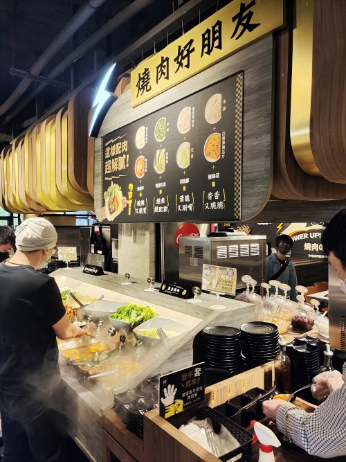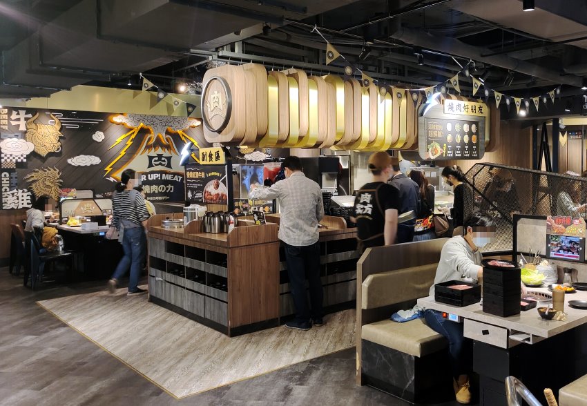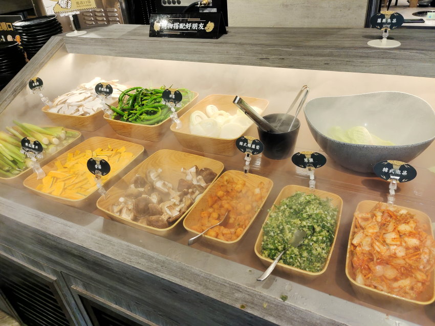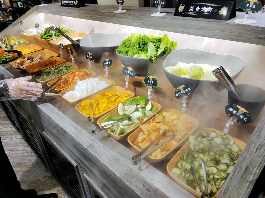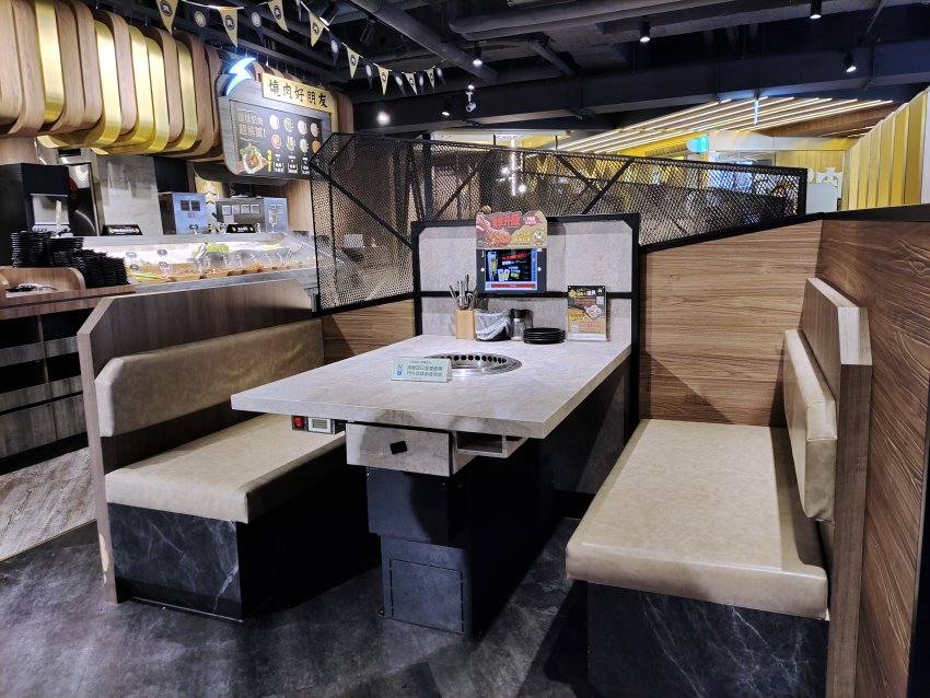▼此外也有卡式座位區,我們這次四個人來用餐也是坐在類似的位子,一旁就是自助區,除了肉品、海鮮、甜點之外,其他通通都可以自取吃到飽!