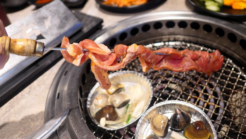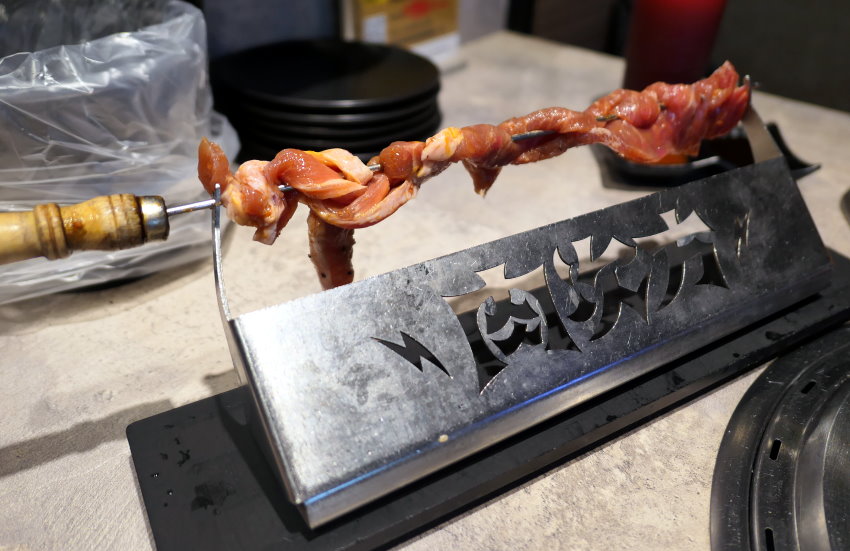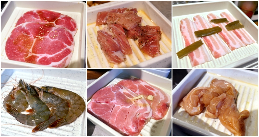 ▼我們除了原味之外也點了不少調味肉品,像是中辛山椒豬里肌、中辛山椒雞腿肉、剝皮辣椒豬五花、塩烤白蝦、塩味大蒜嫩肩牛等,中辛山椒吃起來約略是小辣程度,帶點微辣的味蕾其實還挺開胃的,尤其豬里肌肉比想像中好吃很多,豐厚飽滿又不柴,可以點~~剝皮辣椒豬五花,捲起來後就可以下去烤,加了剝皮辣椒風味更升級,不用調味就挺美味的!蝦子也不錯吃,還算新鮮,只是要烤比較久,來這裡建議還是狂點肉品就好~~