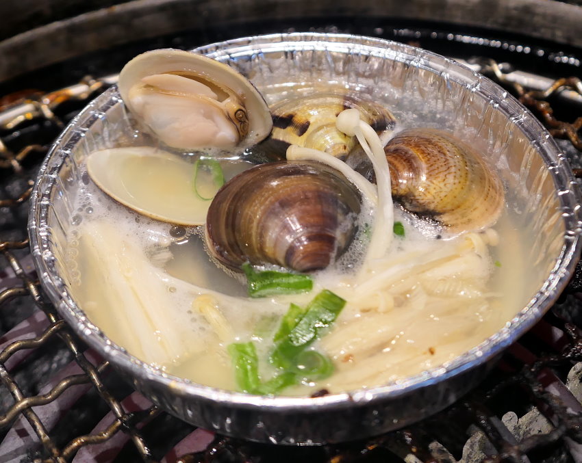 ▼另外還有中辛山椒雞軟骨、金針菇蛤蜊、奶油牛肉燒等,中辛山椒雞軟骨吃起來還算不錯,帶點細嫩又爽脆的口感,搭配微辣的調味很可以!金針菇蛤蜊就不太建議點,雖然我們很愛蛤蜊但真的要烤太久,等到花兒都謝了蛤蜊還沒熟~~除非等肉烤完放中間才會稍微快一點!奶油牛肉燒也是差不多概念,基本上用錫箔盒裝的都建議可以不用點,因為要耗費太多燒烤時間,烤到最後肉也老了,口感也不太好!基本上就是薄片肉品多點一些就對了~~