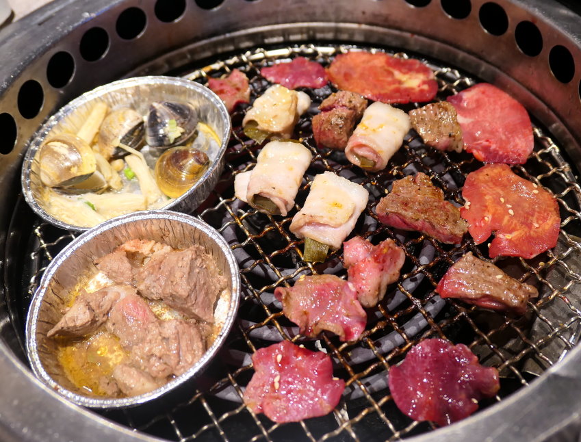 ▼最後一輪就是瘋狂的烤牛舌、剝皮辣椒豬五花啦~~這兩款都可以多點幾次沒問題!金針菇蛤蜊、椒鹽角切牛肉、奶油牛肉燒建議都可以略過,哈!
