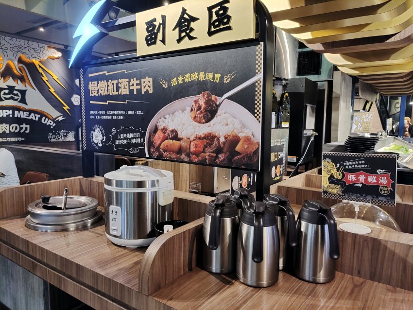 ▼副食區,提供的是慢燉紅酒牛肉及豚骨雞湯,大家記得不要因為太好吃一次吃太多以免吃不下肉肉啦!